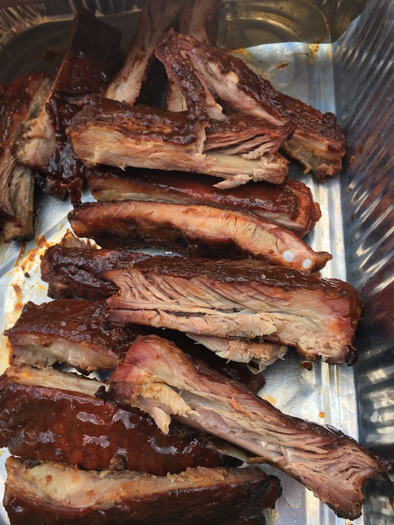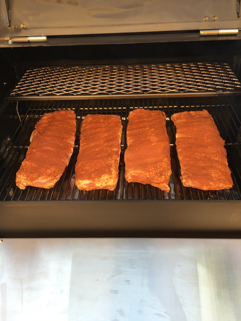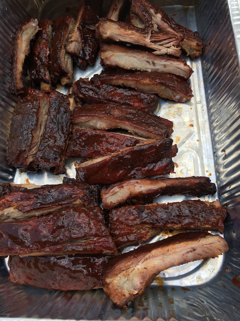 - 4 racks of St. Louis ribs rubbed, prepped and wrapped and ready, sitting in the fridge