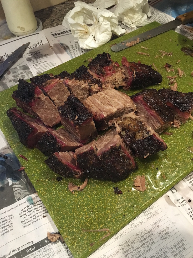 Hey Herb and Jfred, or anybody else for that matter. If you were me, would you have pulled it at 14 hours, when it "felt" right, with the probe going in with little resistance, and nice hard set bark that passed the scratch test, and nice and spongey....even though the internal temps weren't quite where they should have been? should the mindset when it gets close to being done be...."feel trumps temps"