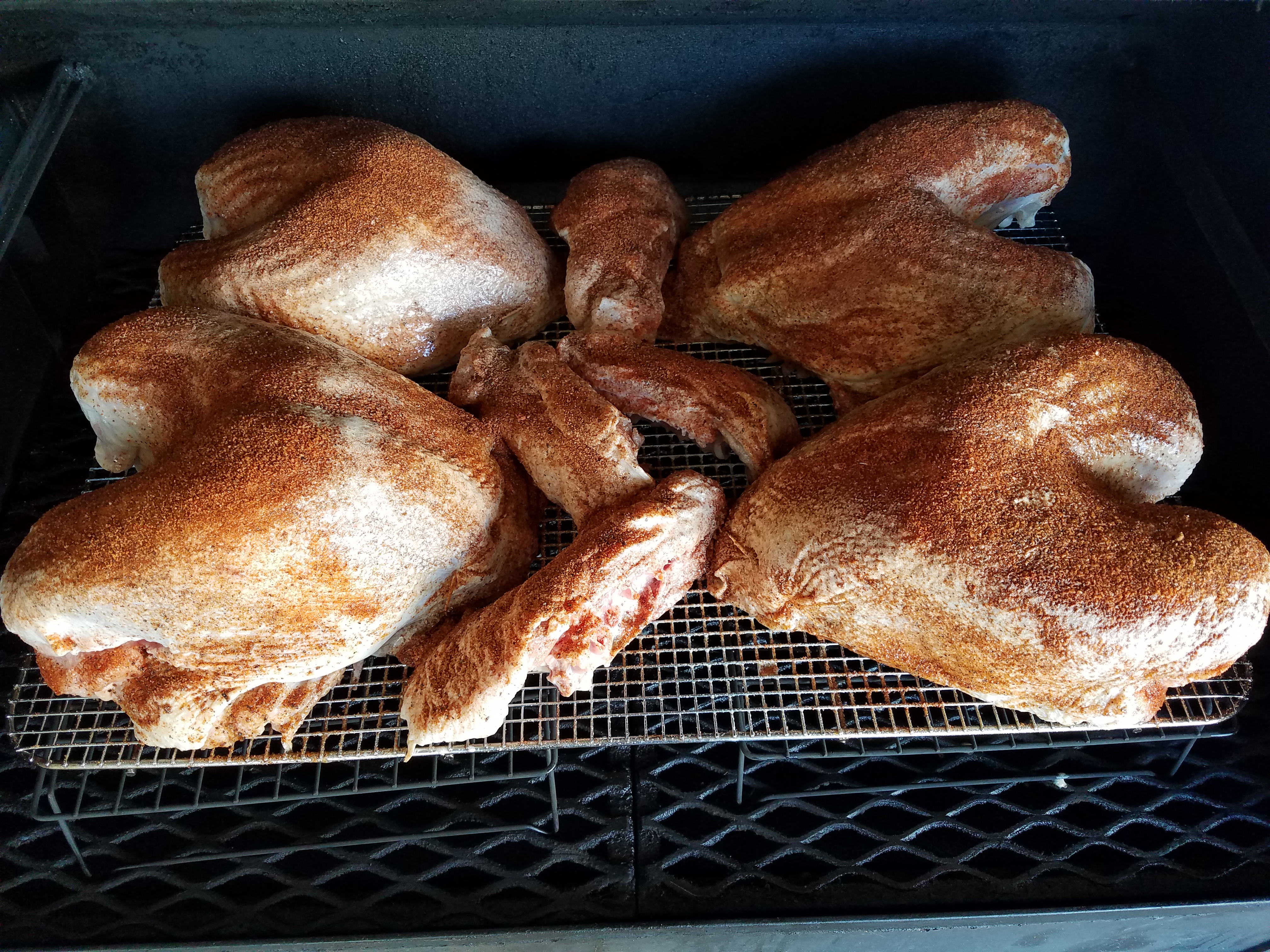 Yoder_Herb wrote:I cook spatchcocked at 350 on a rack on the lower grates. I use a 50/50 mix of BBQRs Delight pecan and cherry for everything. Approximately 20 min per pound as a guideline, not a rule. If it is done early, take it off the cooker when done, let it sit for 10 minutes, then foil it, wrap in towels and drop into a cooler till needed.