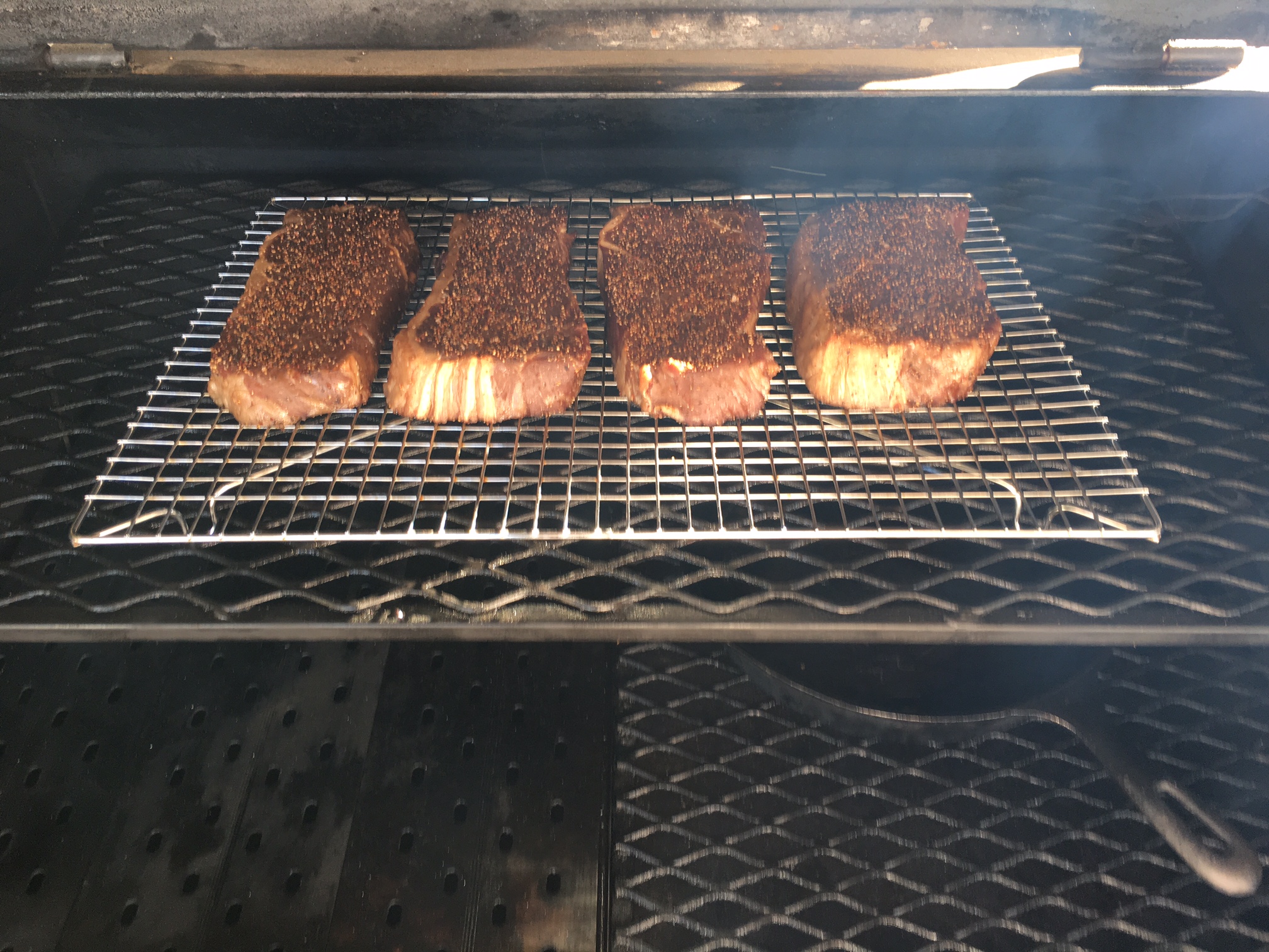 To change things up, I decided to show the difference between doing a normal reverse sear using the optional grill grates, and flipping the optional grill grates over for a griddle or pan-like sear on a YS640.