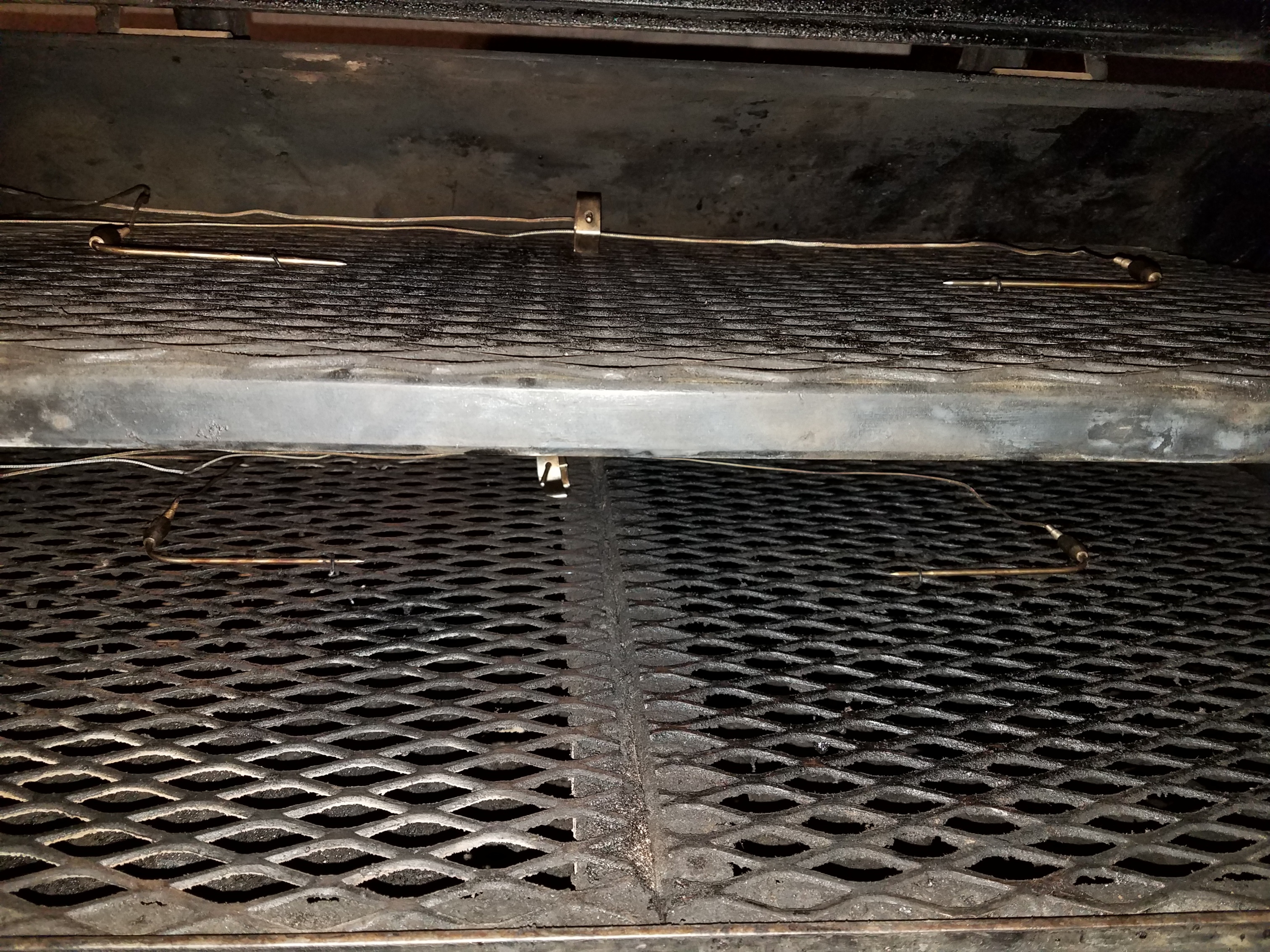 We will use 6 Fireboard temperature probes for this test. There will be 4 Fireboard meat temperature probes, one each on the lower and upper grates at 14" from the hopper wall, and one each on the lower and upper grates at 28" from the hopper wall. There will also be 2 fireboard ambient temperature probes mounted toward the mid point of each grate, one on the lower grate and one on the upper grate, mounted in Fireboard probe holders 1" above the grate surfaces. The goal is to simultaneously record 6 temperature locations over a 2 hour test period by following our Yoder Smokers factory temperature test (download/Best%20Practice%20and%20how%20to/Yoder%20Pellet%20Temperature%20Test%20v2.pdf), and then cooking 2 pork butts, one on the lower grate and one on the upper grate, illustrating the gradient temperature in the cooking chamber, from side to side and bottom to top, and the resultant effect on the Fireboard temperature readings without moving any of the temperature probes inside the cooking chamber after placing meat on the grates.
