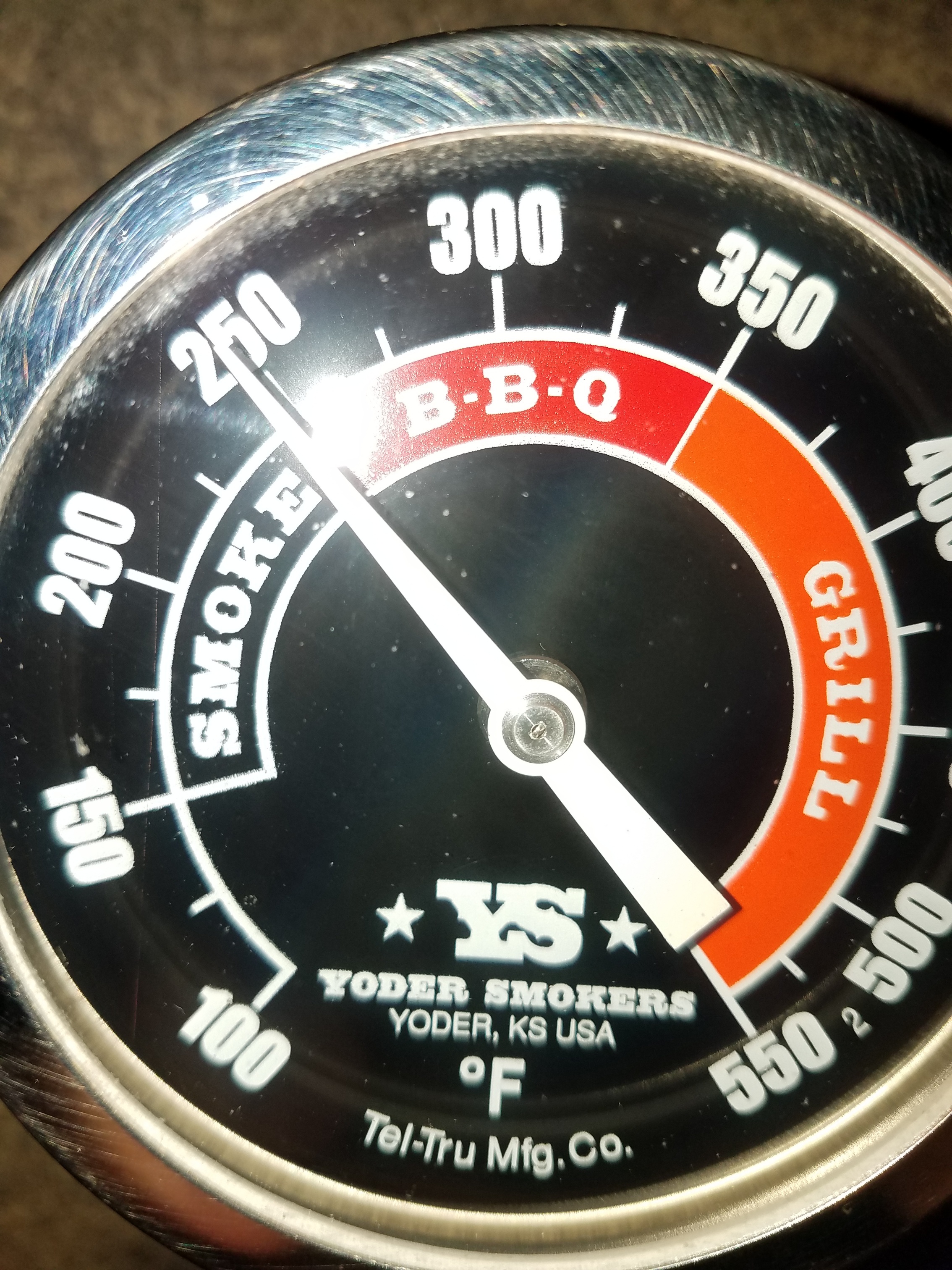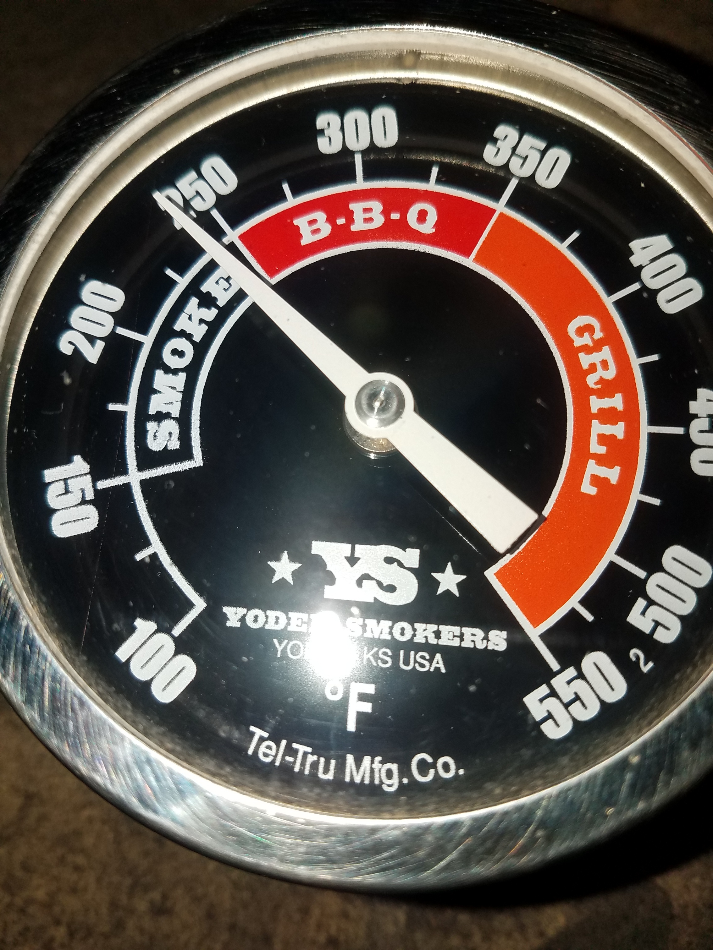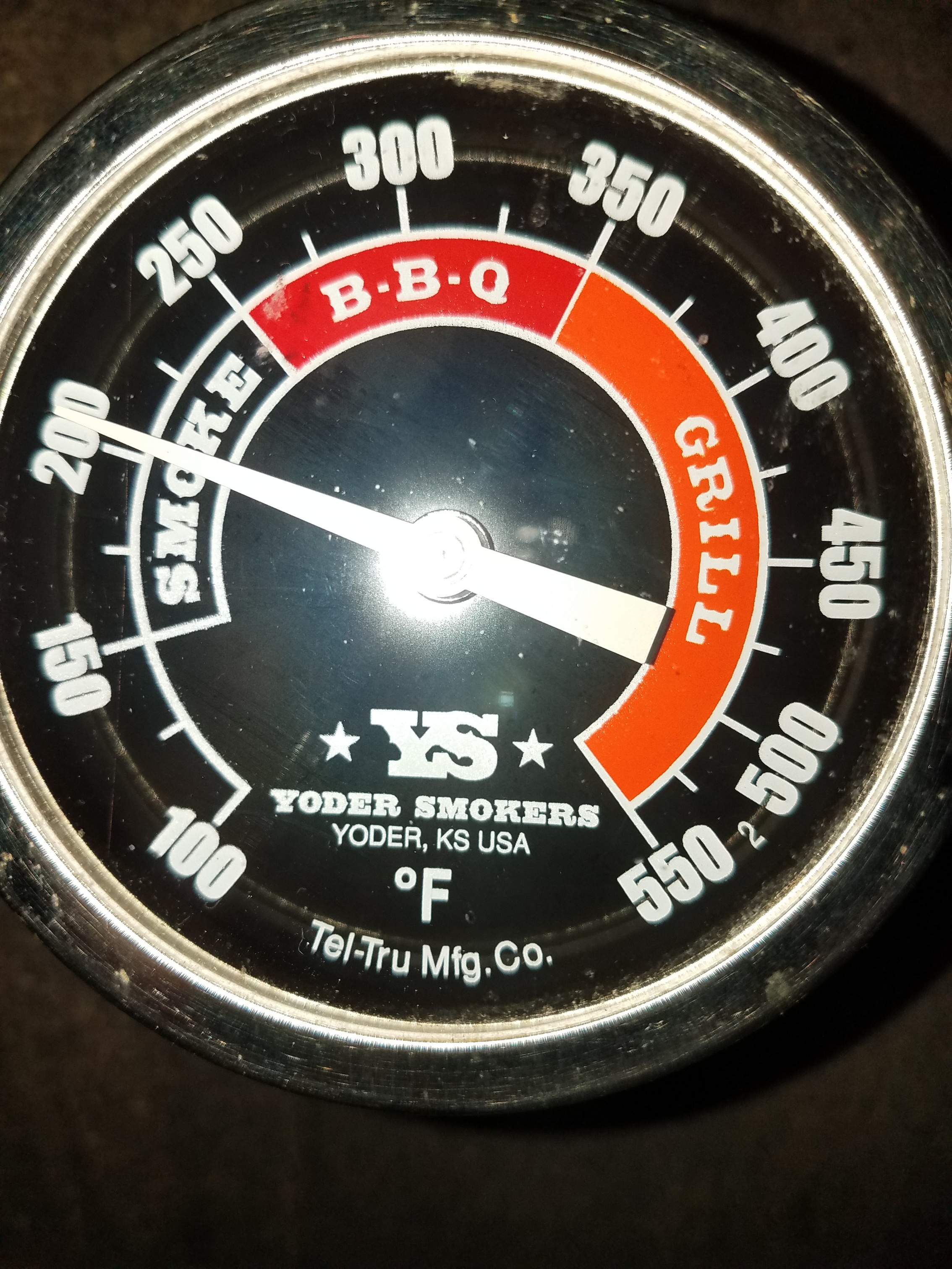 The next 2 pictures show the YS1500 door gauges 1 hour after putting the 2 10 pound pork butts on to cook