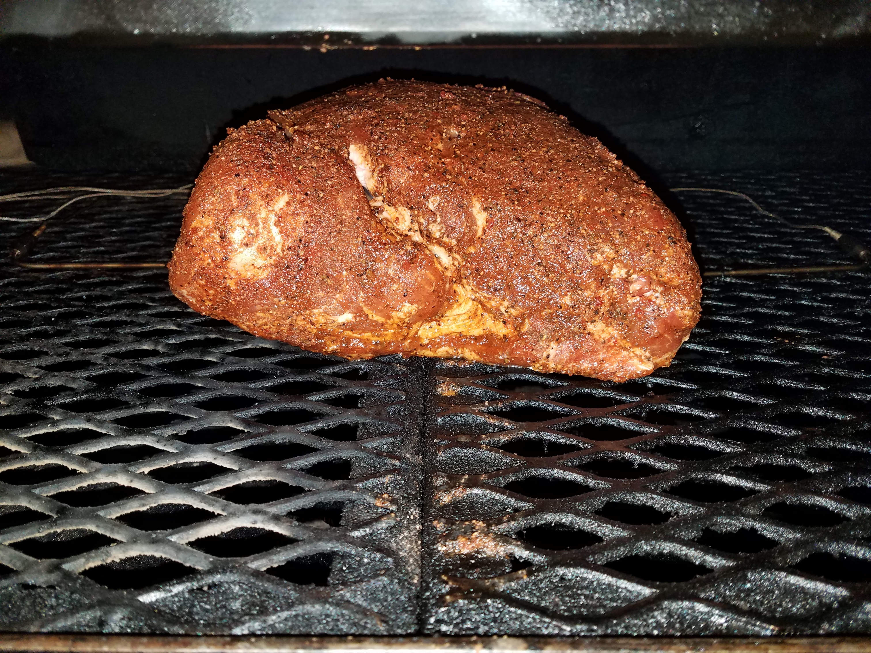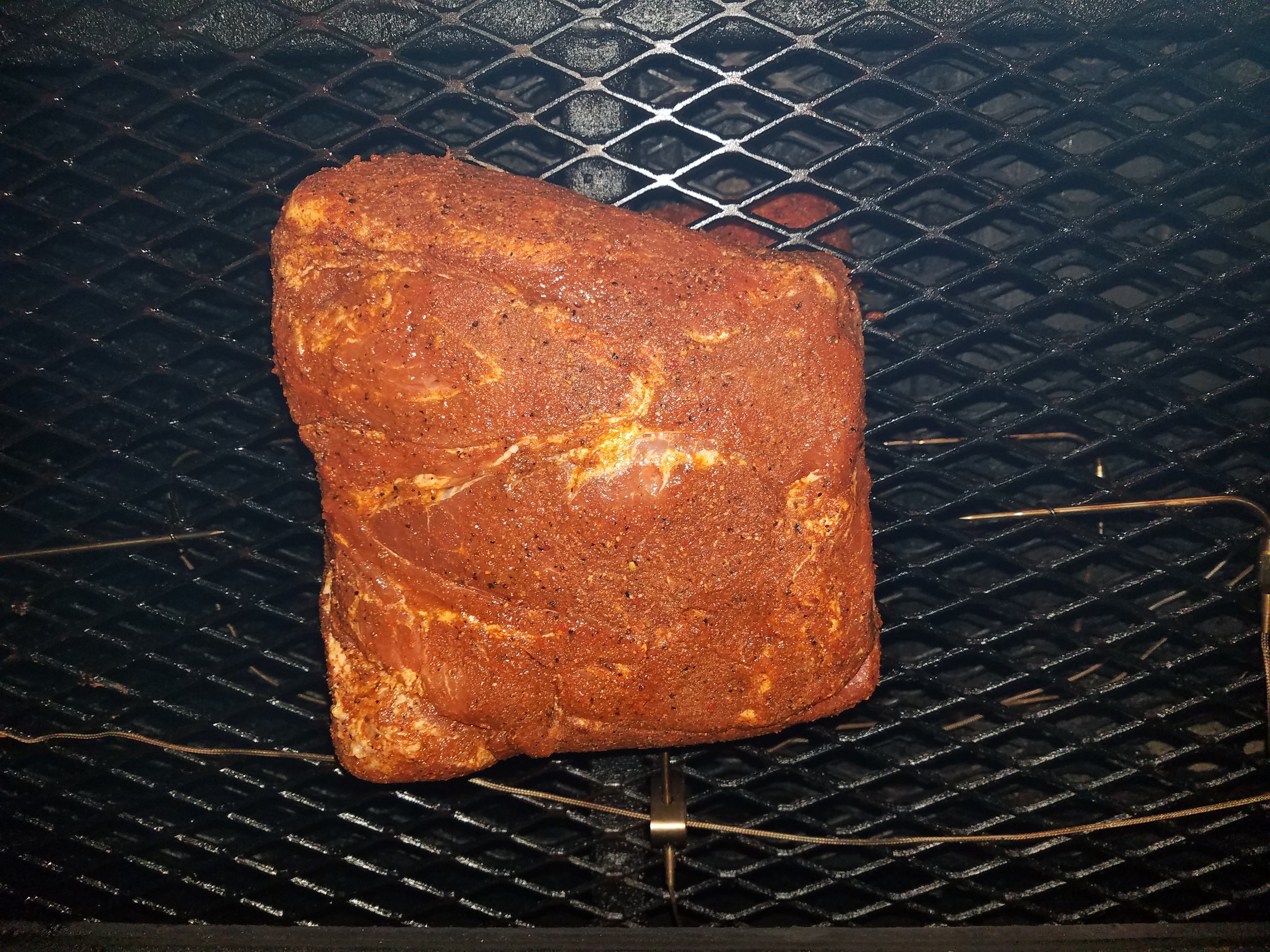 Both pork butts were done, and removed from the cooker, at the same time. The internal temperature reading (taken with an instant read thermometer) were within 3 degrees of each other, with the pork butt on the bottom grate reading 3 degrees higher than the pork but on the upper grate.