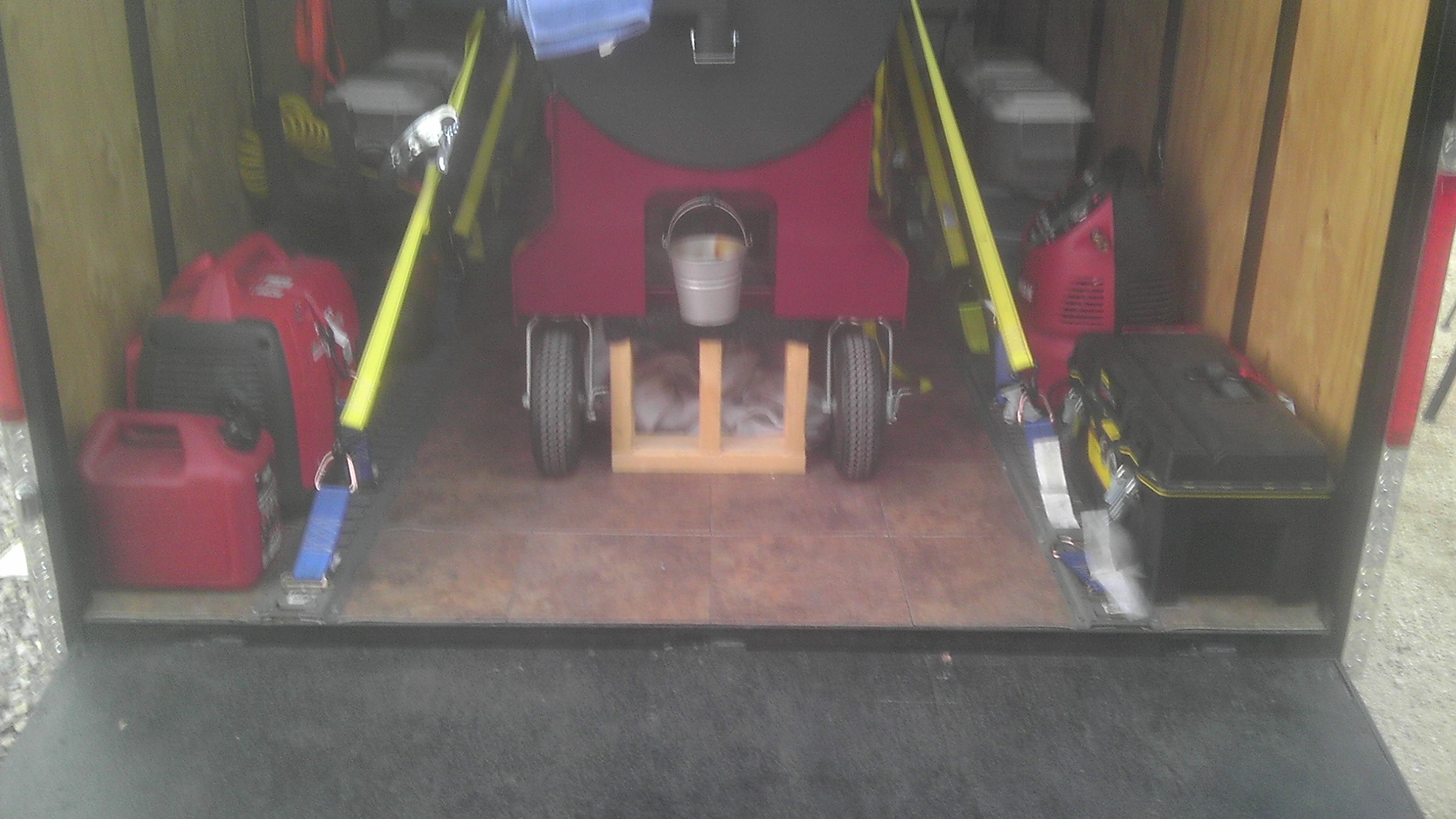 As shown in the first posts, I use straps over the top of the cookers attached to E-track on the floor. The reason I use the frame supports is to protect against damage to the wheels, tires and undercarriage, This also solidly attaches the cooker to the trailer, so that it can not move at all.