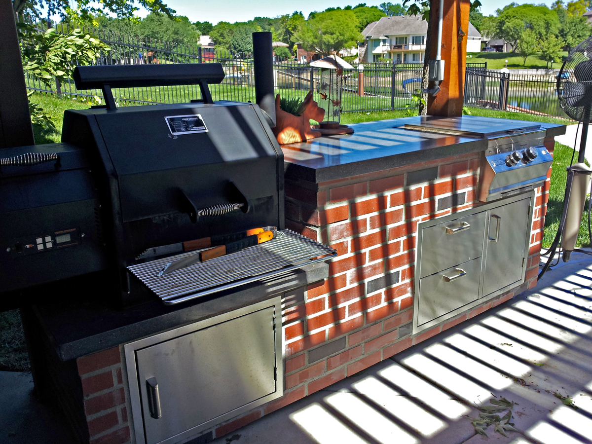 Examples of Yoder Smokers pellet grills built into outdoor kitchens: