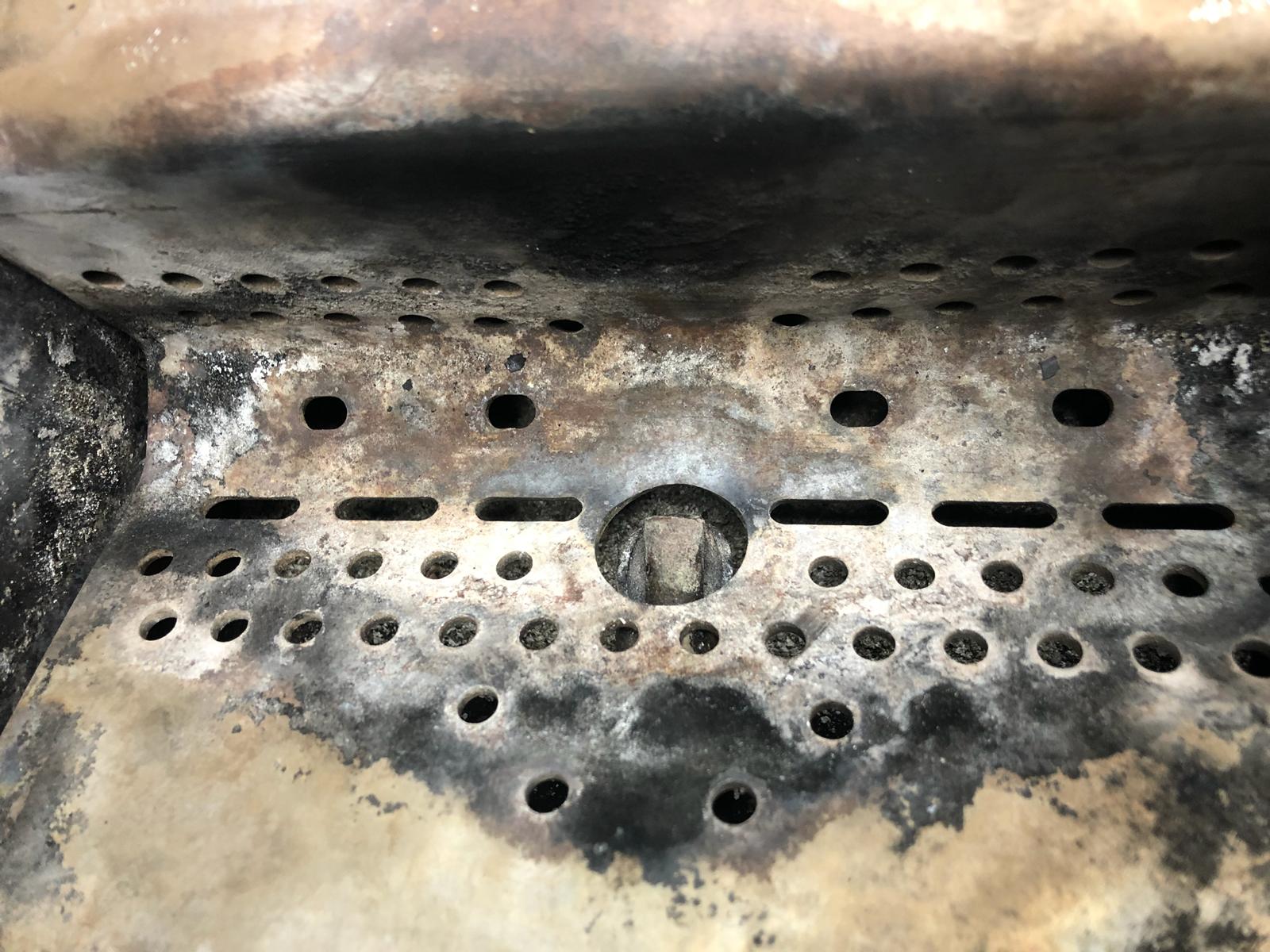 The sealant should not come above the removable burn grate.