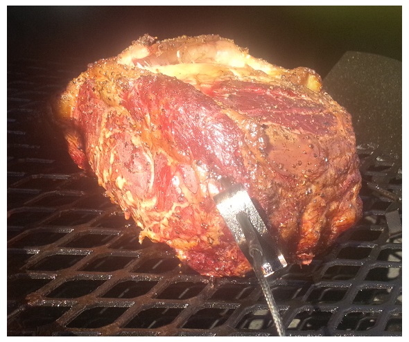 Everything was put on for a 5 hour cook with oak and apple in the Durango 24. I kept the ribs and rib roast around 270, and the faux ham hocks in the vertical chamber at around 170.