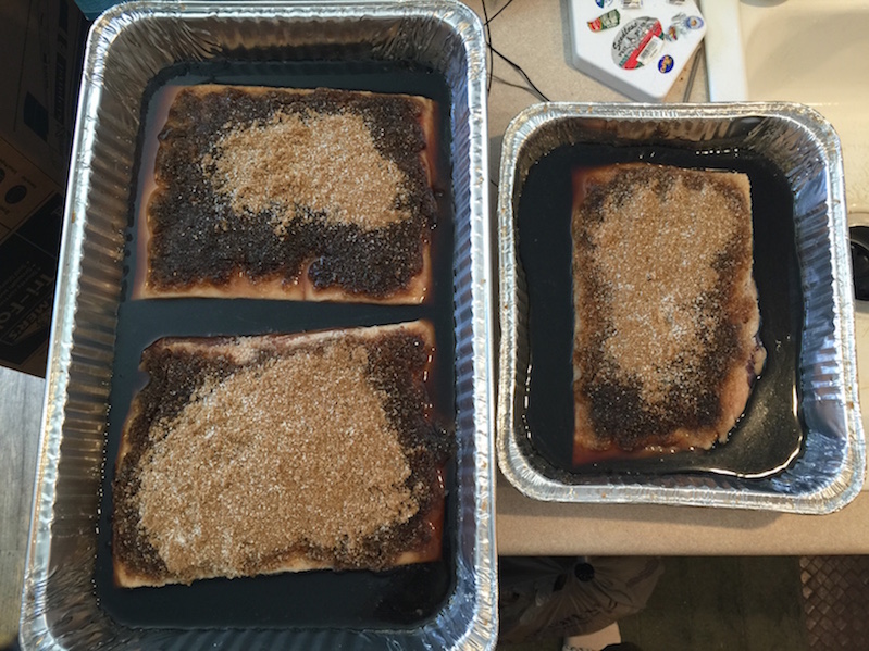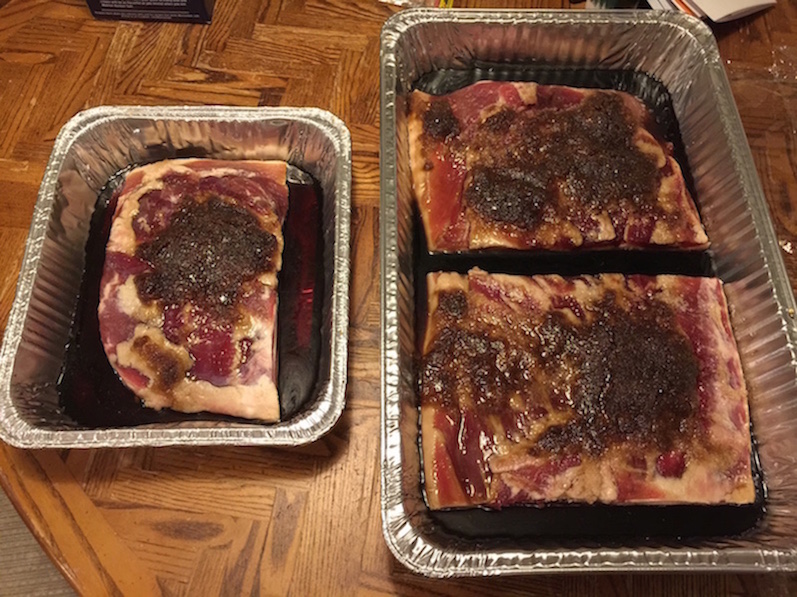 Kicking off the curing process with my pans, salt and brown sugar ready.