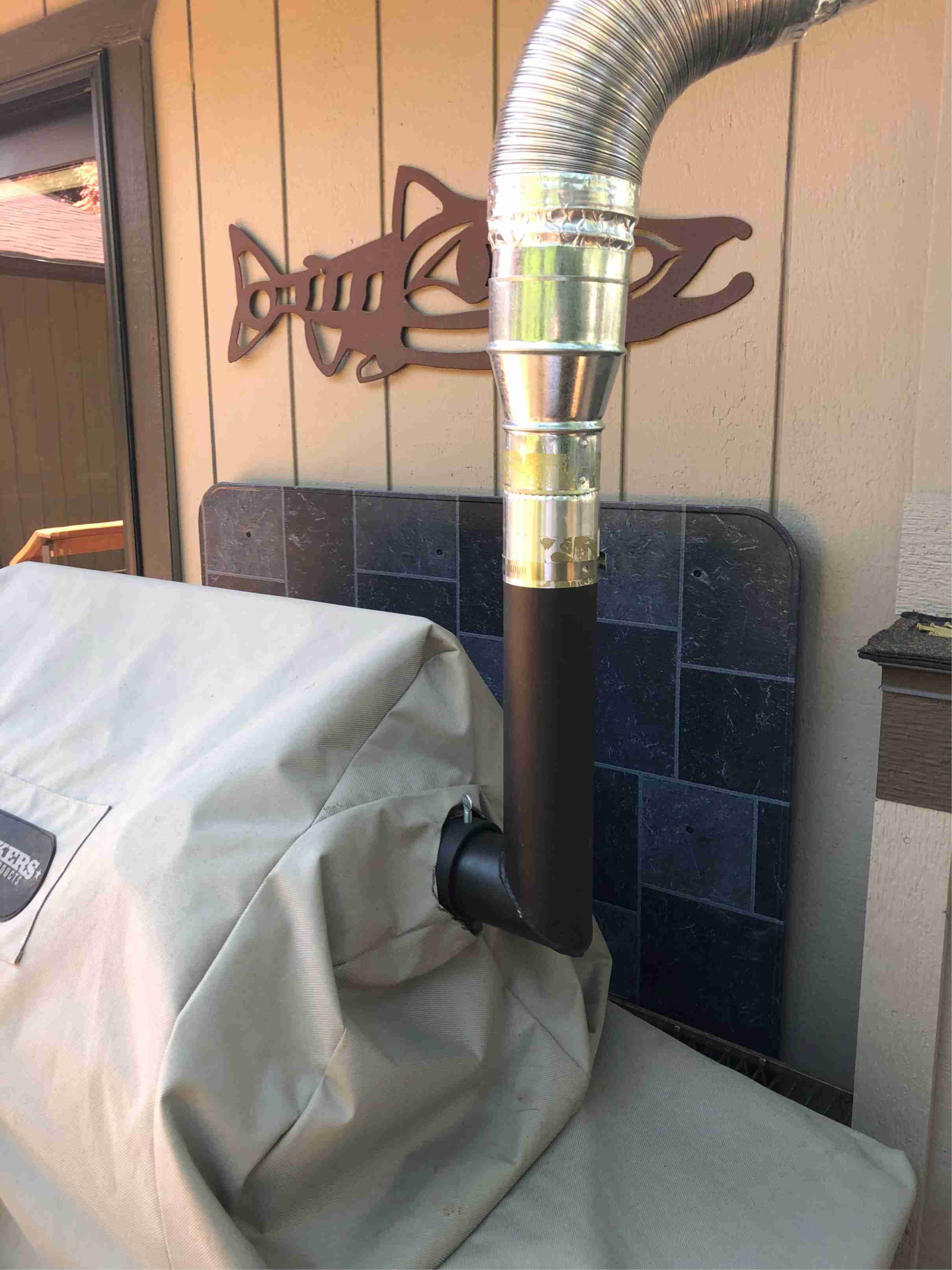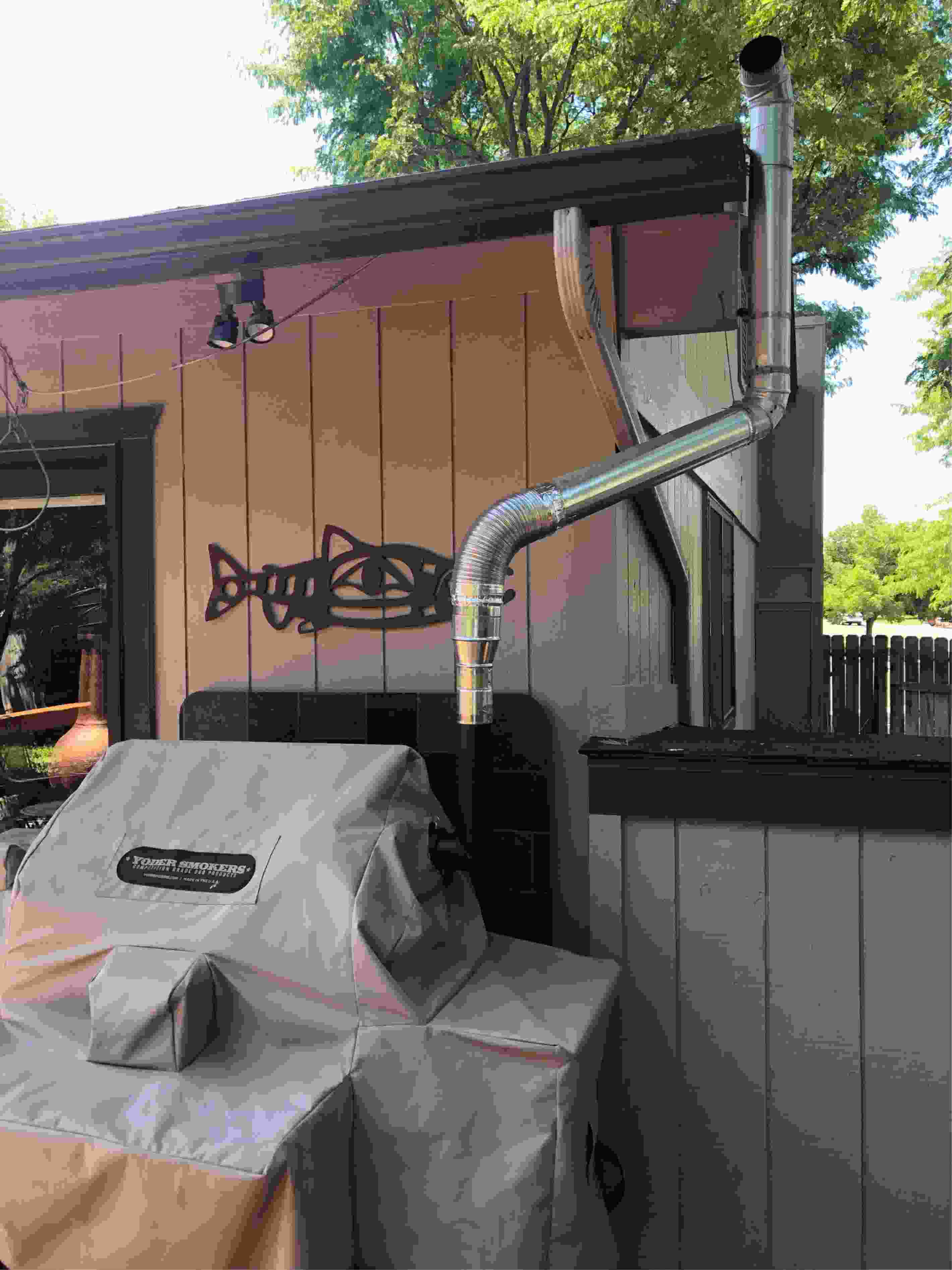 I just installed an extended exhaust system for my YS640S to keep the smoke from discoloring my house. Very simple to disassemble to reinstall the altered rain cover. It takes less than a minute. Picture is included here.
