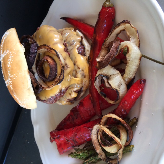 And a traditional burger, sorry for the delayed pictures but here they come, this was before i got the grillgrates, cooked at 350F with the hatch open.