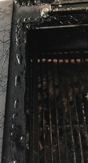 To illustrate an extreme example of what happens with too much "bad" smoke in a cooker, here are a few pictures from a pellet cooker with excessive creosote buildup from using a smoke generator. The black blobs and dark, shiny black coatings are creosote from the unburned solids in "bad" smoke that is built up in the cooker and on the food: