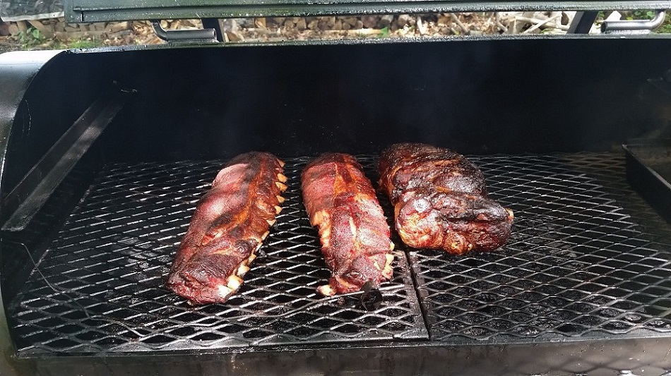 Fired up the Loaded Wichita at 5am so we could have ribs for lunch and pulled pork for dinner. Waiting for the 205 degree temp on the pork butt, 4 hours to go!!
