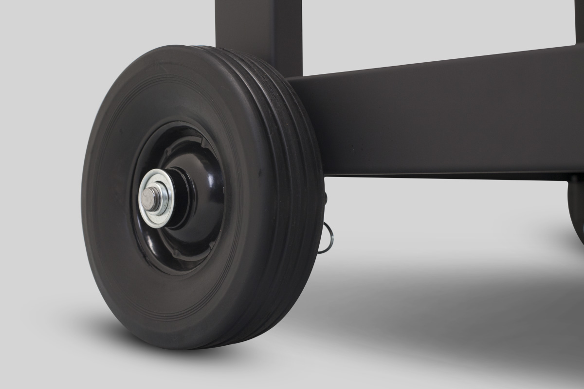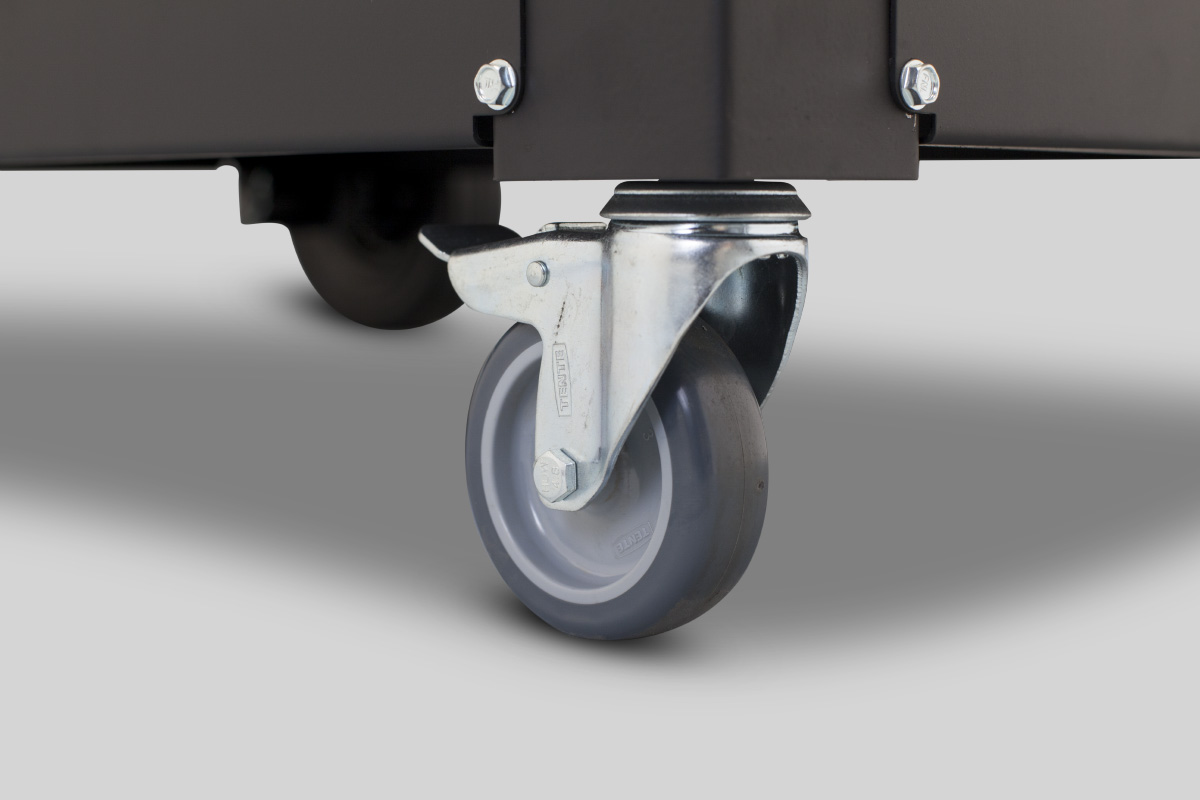 In the spirit of always trying to improve our products, we have changed out the caster and wheel combination on standard pellet carts. We have moved to a 3" caster on the front legs with a improved wheel lock and a 8.00" wheel on the rear. This should make the standard cart easier to move and provide better service life in the long run.