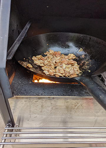 I tried wok cooking on my 640. I bought an oversized wok at a restaurant supply store. It fit in the hole that the diffuser door covers and I cranked the heat up direct to 550. Wok temps hit 700 with the direct flame. It worked great, much better than on the stove.