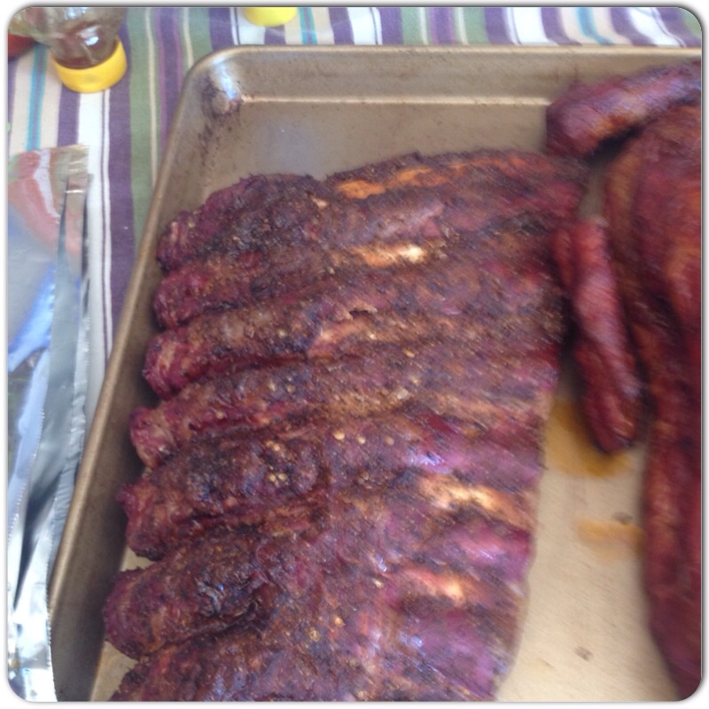 So here are the ribs at 3 hours. Doing the 3-2-1 method.
