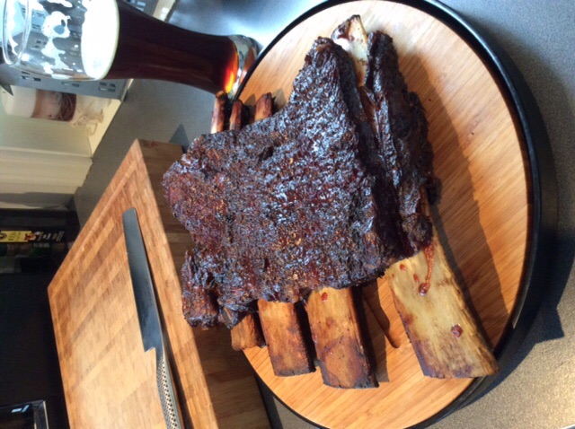 Also went with this beef ribs and a micro brisket, turned out insane good, cooked at 250 with flakesalt and ground coarse pepper, went 5 hours on, wrapped for 4 and 30min unwrapped